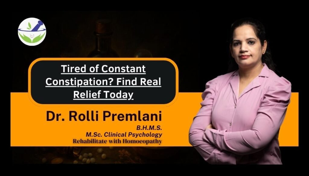 Many patients feel a big difference after starting our specialized treatment plans. You will find relief from that constant “unfinished” feeling every morning. Our goal is to make your digestive system strong again. Do not let Constipation control your mood and your diet anymore. Visit Rehabilitate with homoeopathy, Dr Rolli for a gentle and permanent solution. We help you live a light and energetic life once more.